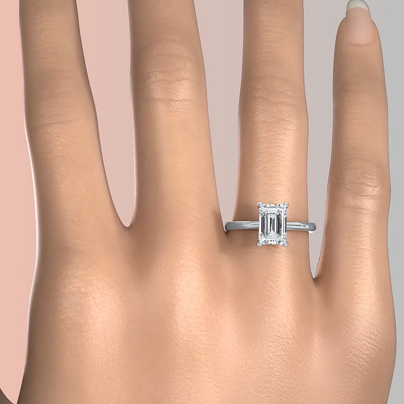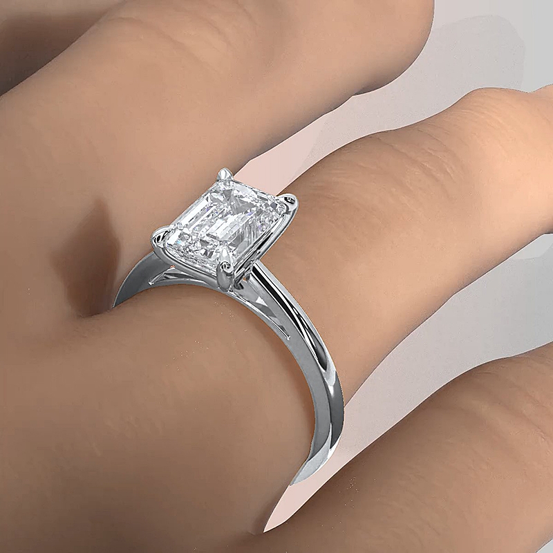 style Engagement Ring, center is Emerald shape Diamond Report by GIA, E Color & VVS2 clarity, Made in Platinum 950 (0.53 ct. tw.)