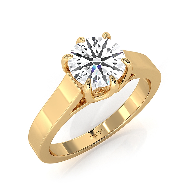 round diamond engagement ring report by gia, f color & vs1 clarity, 18k yellow gold (0.5 ct. tw.)