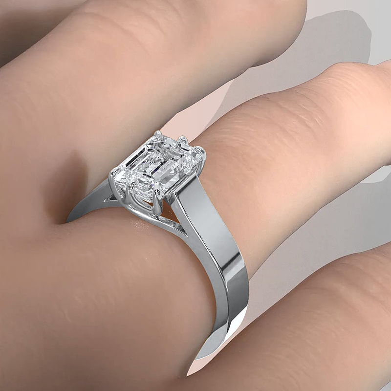 style Engagement Ring, center is Emerald shape Diamond Report by IGI, D Color & VS1 clarity, Made in Platinum 950 (2.63 ct. tw.)