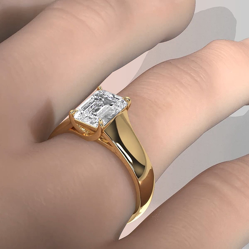 style Engagement Ring, center is Emerald shape Diamond Report by IGI, D Color & VS1 clarity, Made in 14k Yellow Gold (1 ct. tw.)