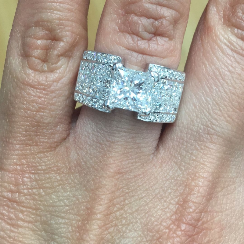 Invisible Setting Shank style Engagement Ring, center is Princess shape Diamond Report by GIA, J Color & VS1 clarity, Made in 14k Yellow Gold (3.55 ct. tw.)