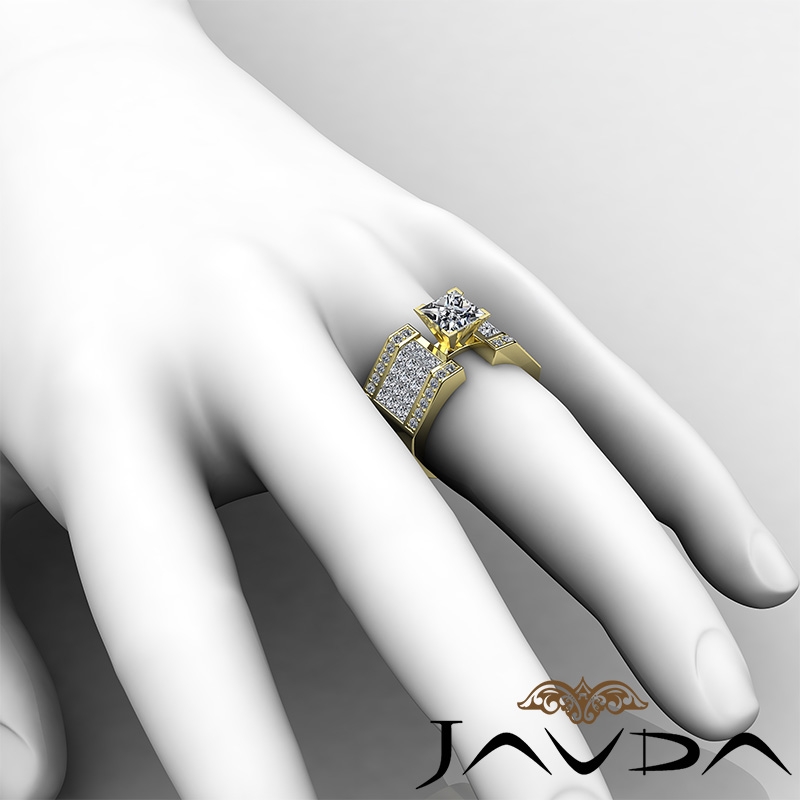 2.62Ct Princess Invisible Diamond Engagement Ring 14k Yellow Gold Semi Mount - javda.com