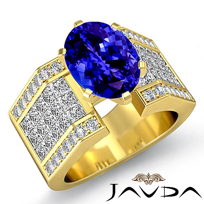 Invisible Setting Shank style Engagement Ring, center is Oval shape D Block Tanzanite Report by , Color & clarity, Made in 14k Yellow Gold (3.62 ct. tw.)