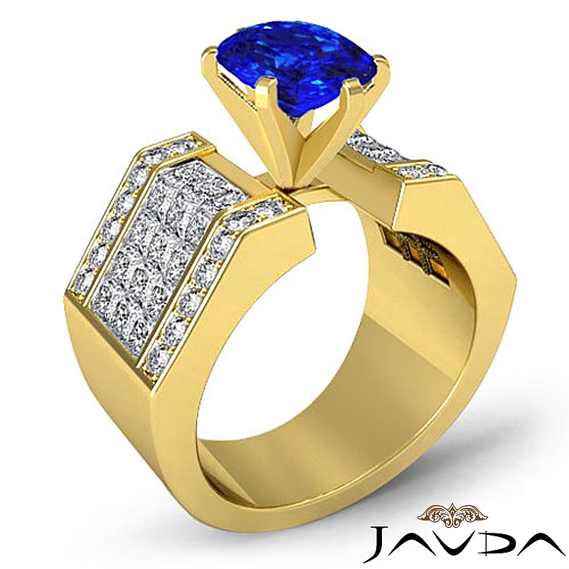 2.62Ct Princess Invisible Diamond Engagement Ring 14k Yellow Gold Semi Mount.