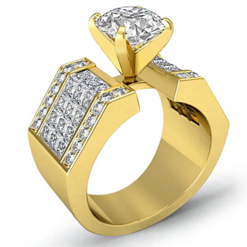 Invisible Setting Shank style Engagement Ring, center is Round shape Diamond Report by GIA, H Color & SI1 clarity, Made in 14k Yellow Gold (3.42 ct. tw.)