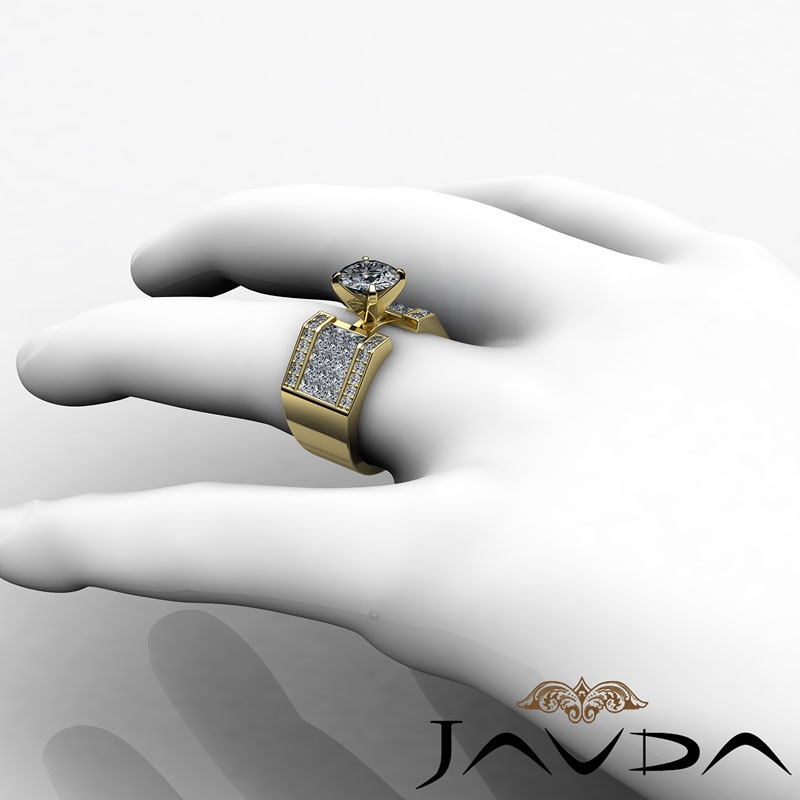 2.62Ct Princess Invisible Diamond Engagement Ring 14k Yellow Gold Semi Mount - javda.com