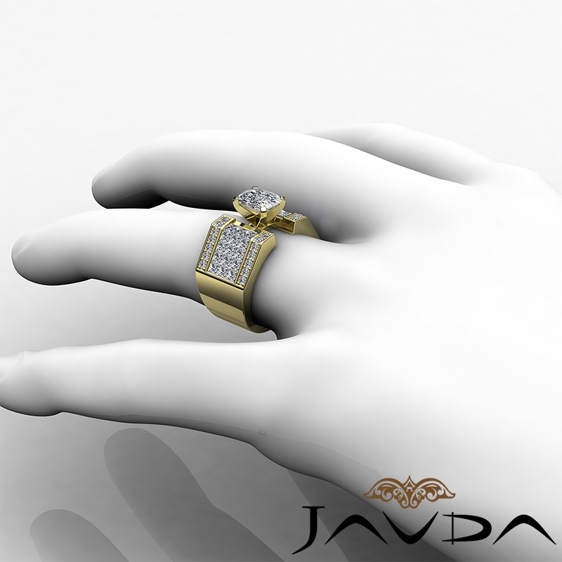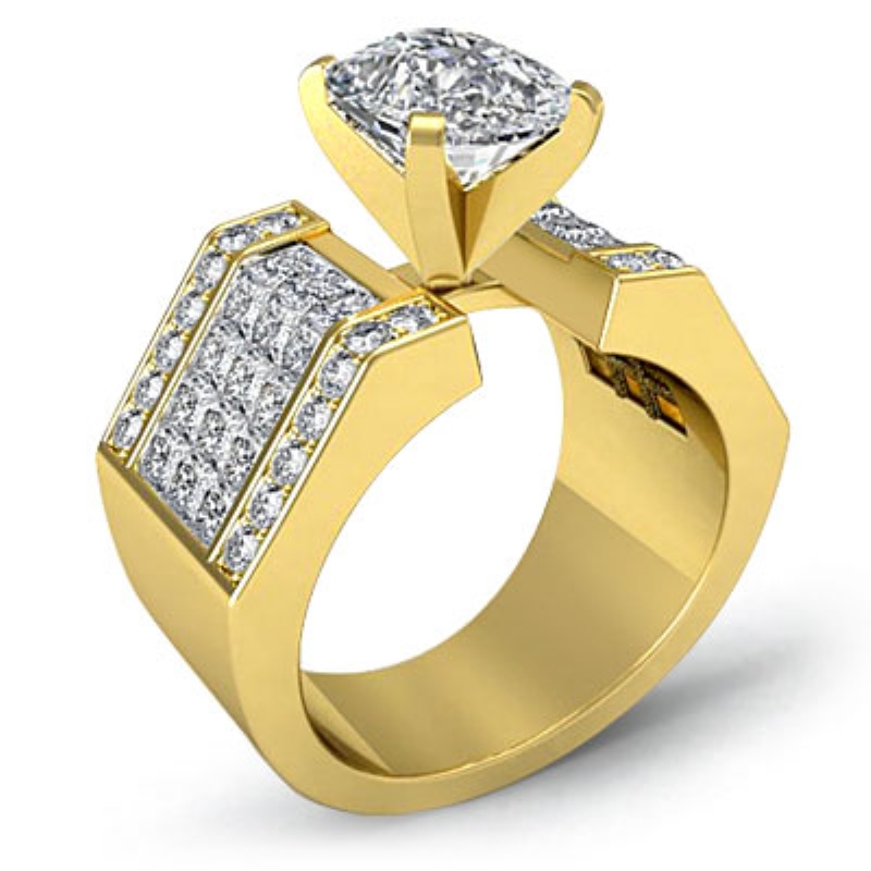 Invisible Setting Shank style Engagement Ring, center is Cushion shape Diamond Report by GIA, I Color & VS1 clarity, Made in 18k Yellow Gold (3.57 ct. tw.)