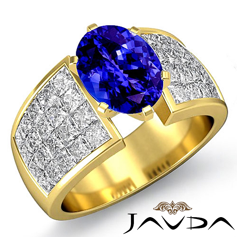 Invisible Set 4 Prong Peg Head style Engagement Ring, center is Oval shape D Block Tanzanite Report by , Color & clarity, Made in 14k Yellow Gold (2.74 ct. tw.)