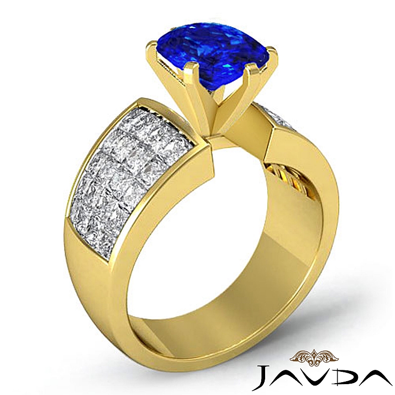 1.74Ct Diamond Engagement Women's Ring Princess Invisible Setting 14k Yellow Gold Semi Mount.