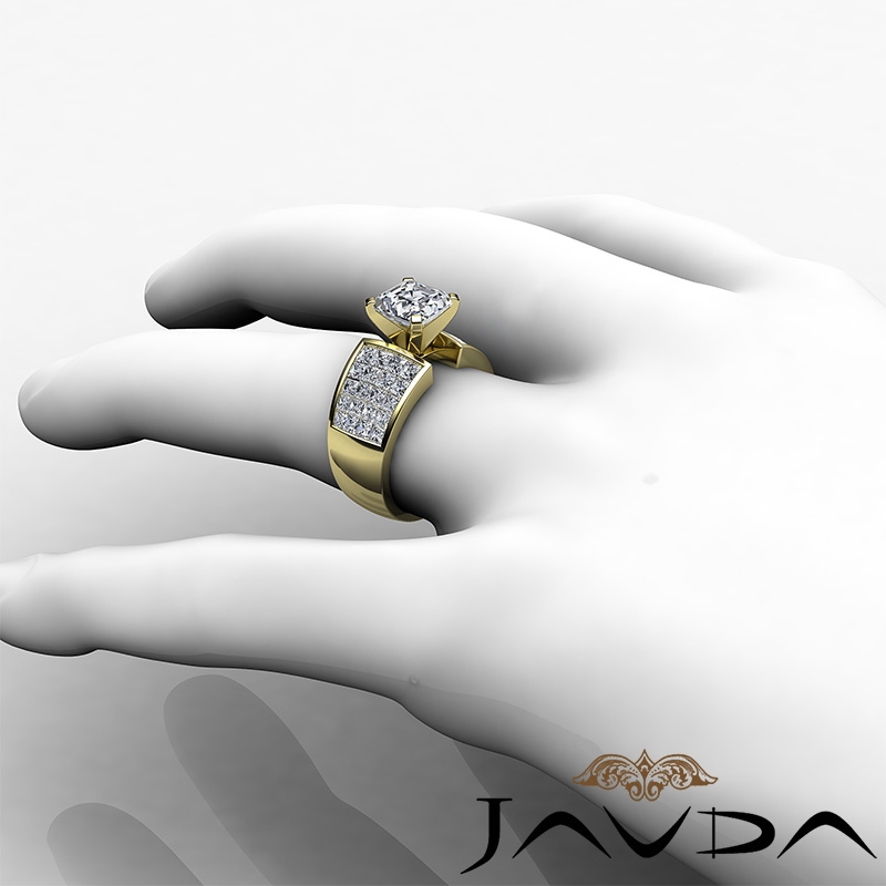 1.74Ct Diamond Engagement Women's Ring Princess Invisible Setting 14k Yellow Gold Semi Mount.