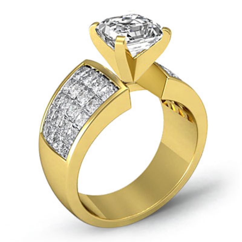 Invisible Set 4 Prong Peg Head style Engagement Ring, center is Asscher shape Diamond Report by IGI, D Color & VS1 clarity, Made in 14k Yellow Gold (2.82 ct. tw.)