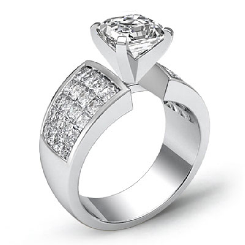 Invisible Set 4 Prong Peg Head style Engagement Ring, center is Asscher shape Diamond Report by IGI, D Color & VS1 clarity, Made in 18k White Gold (3.23 ct. tw.)