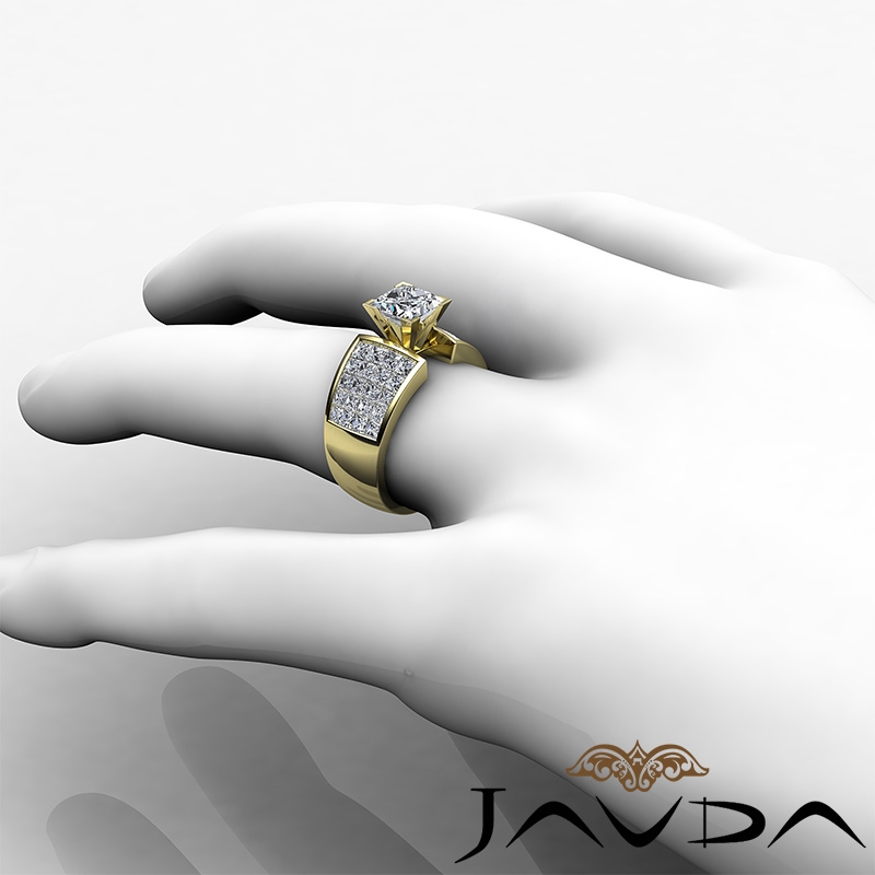 1.74Ct Diamond Engagement Women's Ring Princess Invisible Setting 18k Yellow Gold Semi Mount.