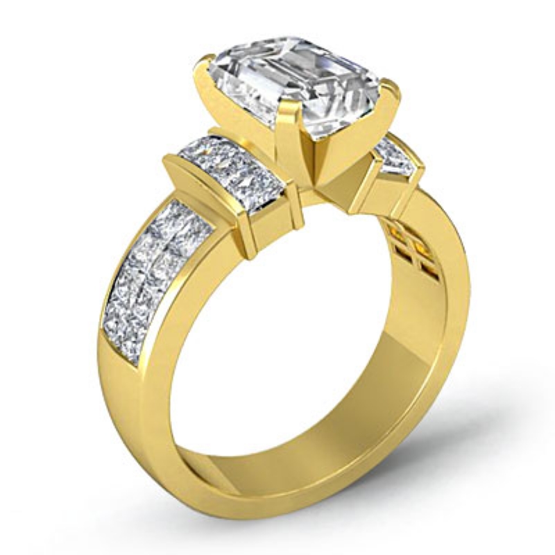 Classic Side-Stone Invisible style Engagement Ring, center is Emerald shape Diamond Report by GIA, D Color & IF clarity, Made in 18k Yellow Gold (1.53 ct. tw.)