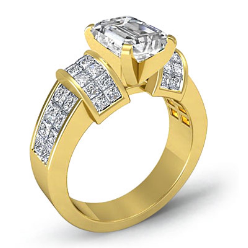 style Engagement Ring, center is Emerald shape Diamond Report by IGI, D Color & VS1 clarity, Made in 14k Yellow Gold (2.96 ct. tw.)