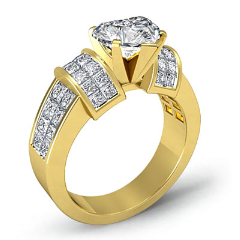 1.96Ct Diamond Engagement Ring 14k Yellow Gold Princess Semi Mount.