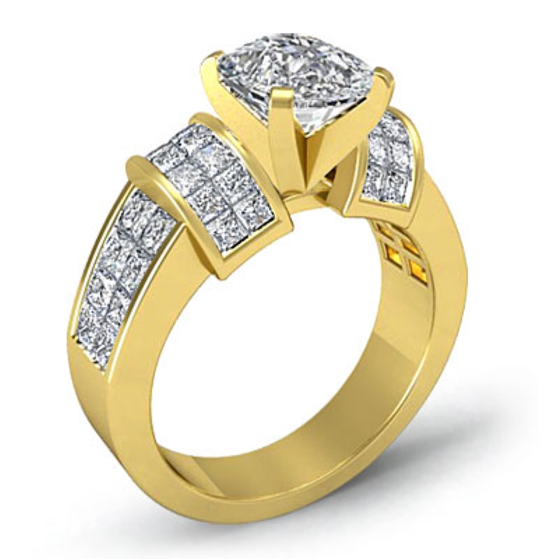1.96Ct Diamond Engagement Ring 18k Yellow Gold Princess Semi Mount.