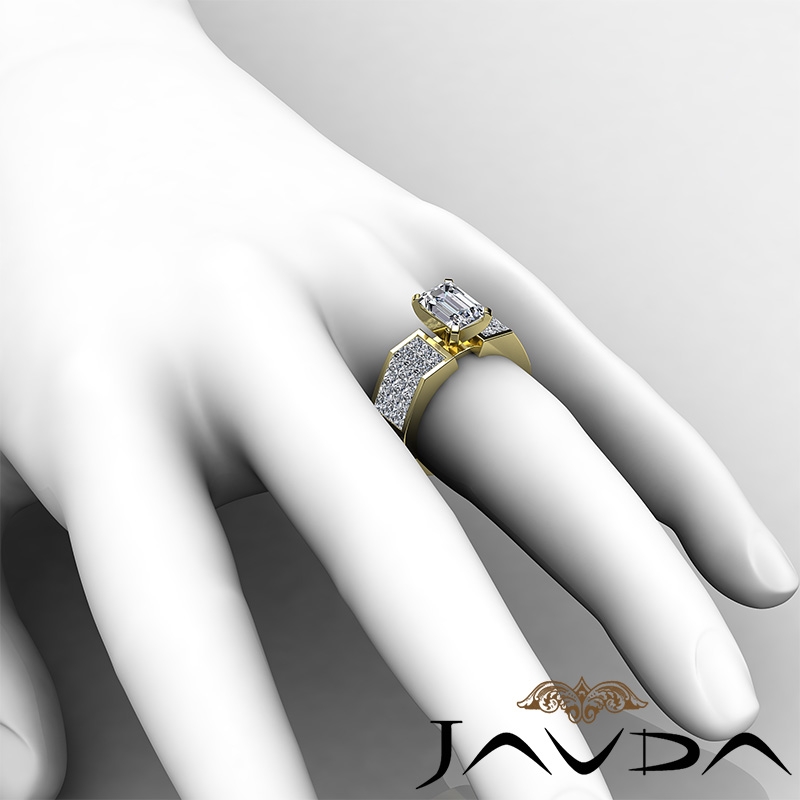 Sidestone Invisible Set Shank style Engagement Ring, center is Emerald shape Diamond Report by GIA, E Color & VVS2 clarity, Made in 14k Yellow Gold (2.07 ct. tw.)