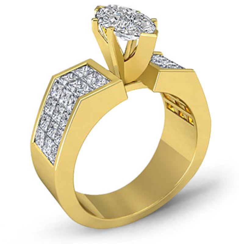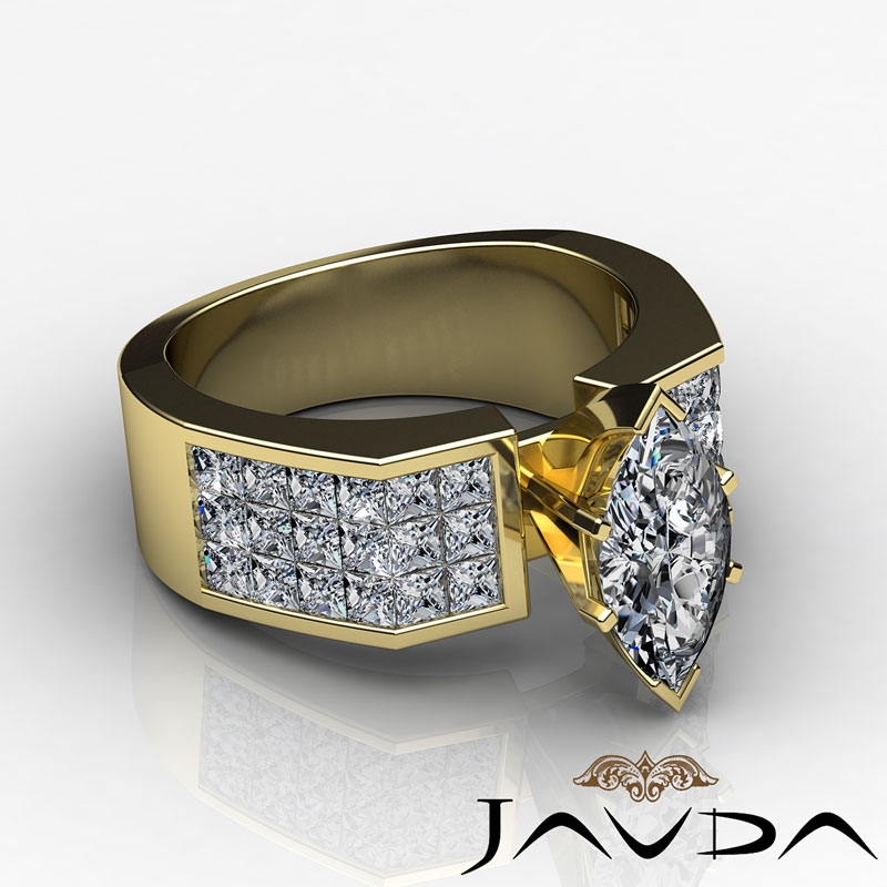 Sidestone Invisible Set Shank style Engagement Ring, center is Marquise shape Diamond Report by GIA, F Color & VVS2 clarity, Made in 14k Yellow Gold (2.54 ct. tw.)