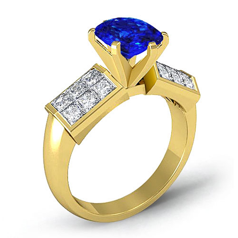 1.06Ct Princess Diamond Engagement Women's Ring Invisible Setting 14k Yellow Gold.
