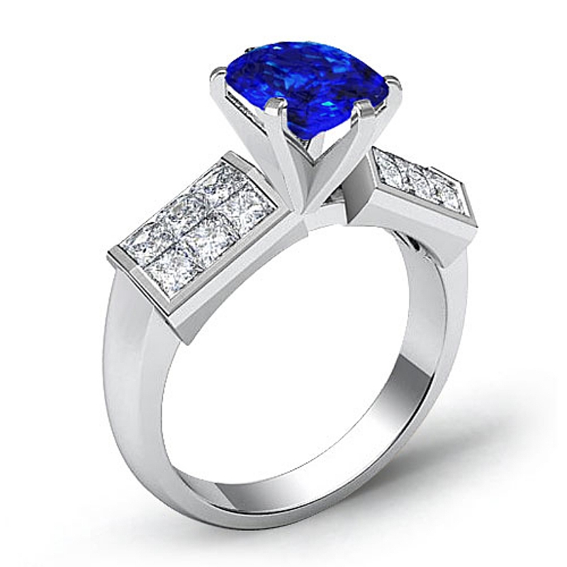 Invisible 4 Prong Setting style Engagement Ring, center is Oval shape D Block Tanzanite Report by , Color & clarity, Made in 18k White Gold (2.06 ct. tw.)