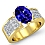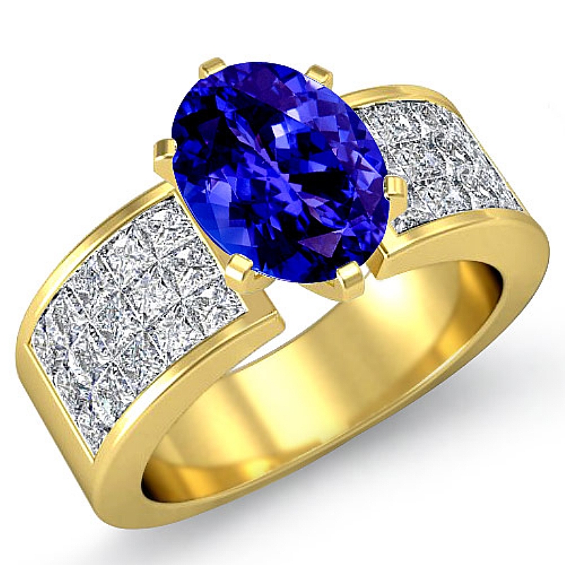 Classic Side Stone 4 Prong style Engagement Ring, center is Oval shape D Block Tanzanite Report by , Color & clarity, Made in 14k Yellow Gold (3.1 ct. tw.)