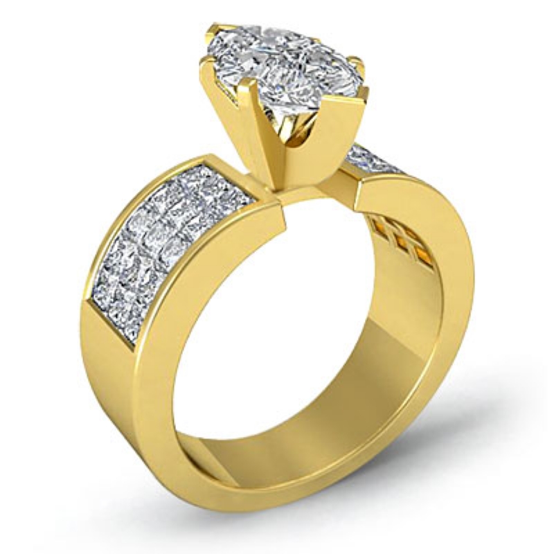 1.29Ct Princess Diamond Invisible Setting Engagement Women's Ring 14k Yellow Gold.