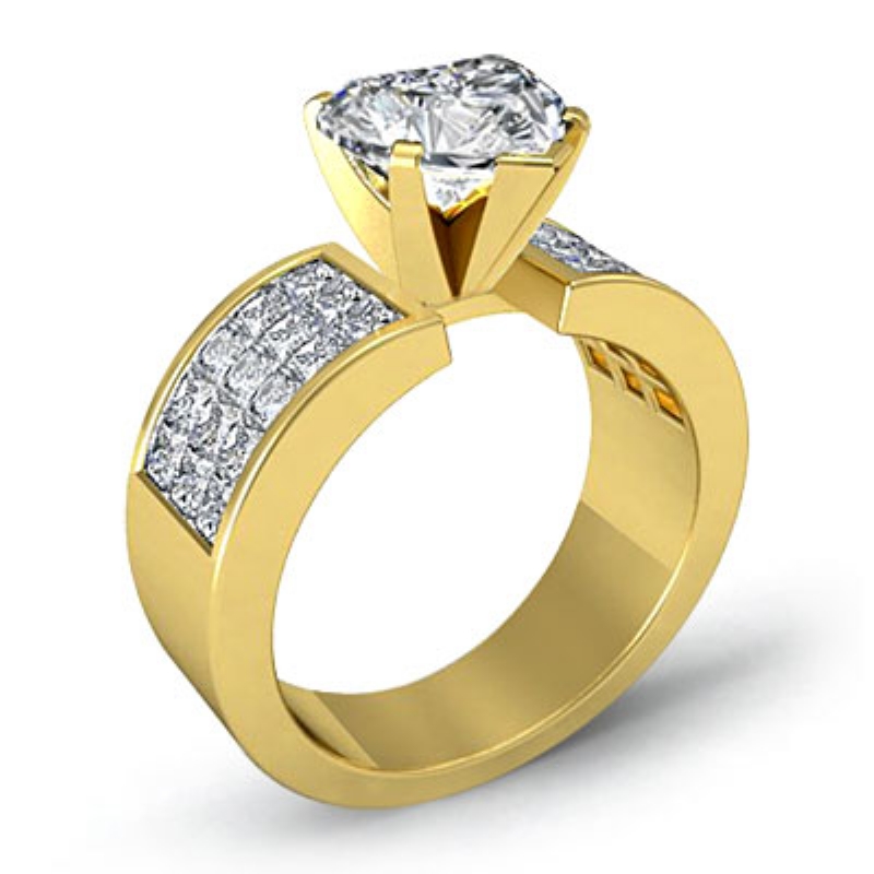 1.29Ct Princess Diamond Invisible Setting Engagement Women's Ring 14k Yellow Gold - javda.com
