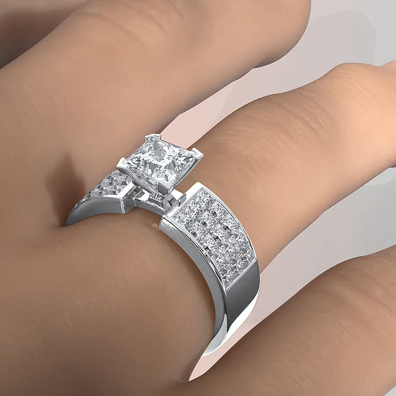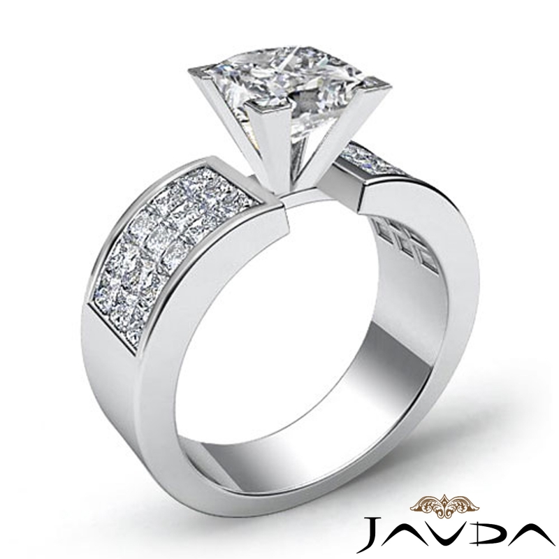 Classic Side Stone 4 Prong style Engagement Ring, center is Princess shape Diamond Report by GIA, H Color & VVS2 clarity, Made in 18k White Gold (1.81 ct. tw.)