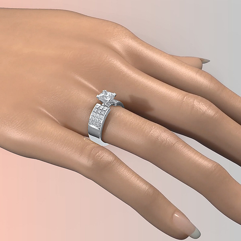 1.29Ct Princess Diamond Invisible Setting Engagement Women's Ring 18k White Gold.