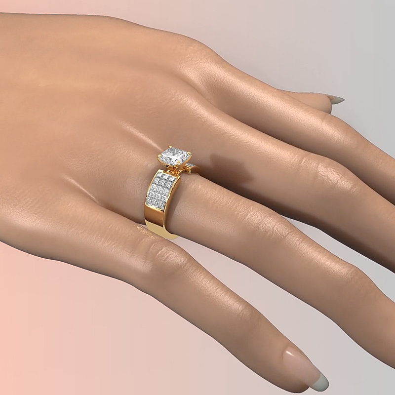 1.29Ct Princess Diamond Invisible Setting Engagement Women's Ring 18k Yellow Gold - javda.com
