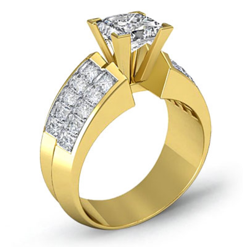 1.72Ct Princess Diamond Women Engagement Ring Invisible 14k Yellow Gold Semi Mount.