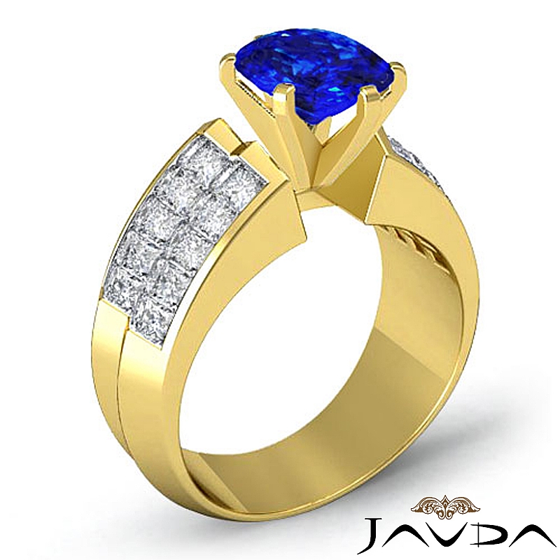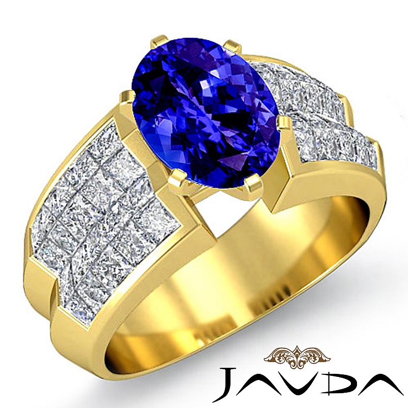 Classic Side Stone Invisible style Engagement Ring, center is Oval shape D Block Tanzanite Report by , Color & clarity, Made in 14k Yellow Gold (2.72 ct. tw.)