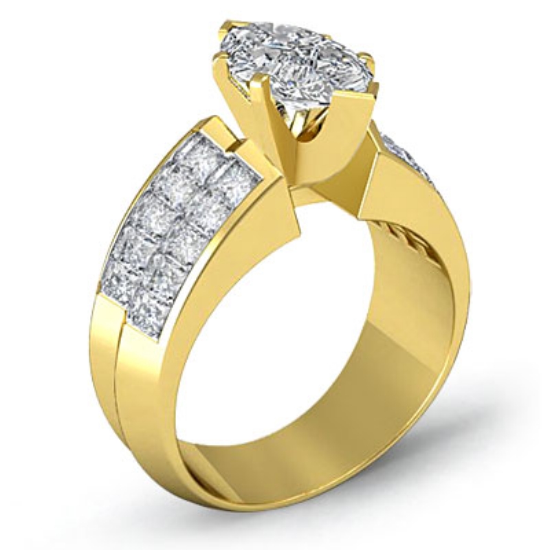Classic Side Stone Invisible style Engagement Ring, center is Marquise shape Diamond Report by IGI, E Color & VS1 clarity, Made in 14k Yellow Gold (4.52 ct. tw.)