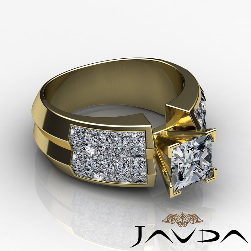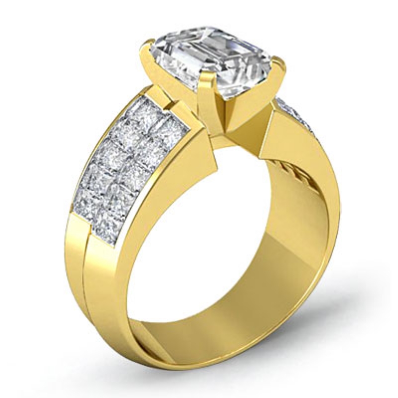 Classic Side Stone Invisible style Engagement Ring, center is Princess shape Diamond Report by GIA, J Color & VS1 clarity, Made in 18k Yellow Gold (2.63 ct. tw.)