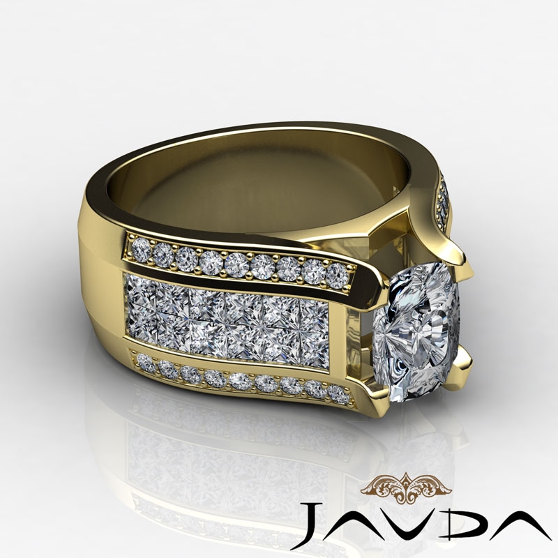 Vintage Invisible Setting style Engagement Ring, center is Cushion shape Diamond Report by GIA, E Color & VVS2 clarity, Made in 14k Yellow Gold (2.7 ct. tw.)