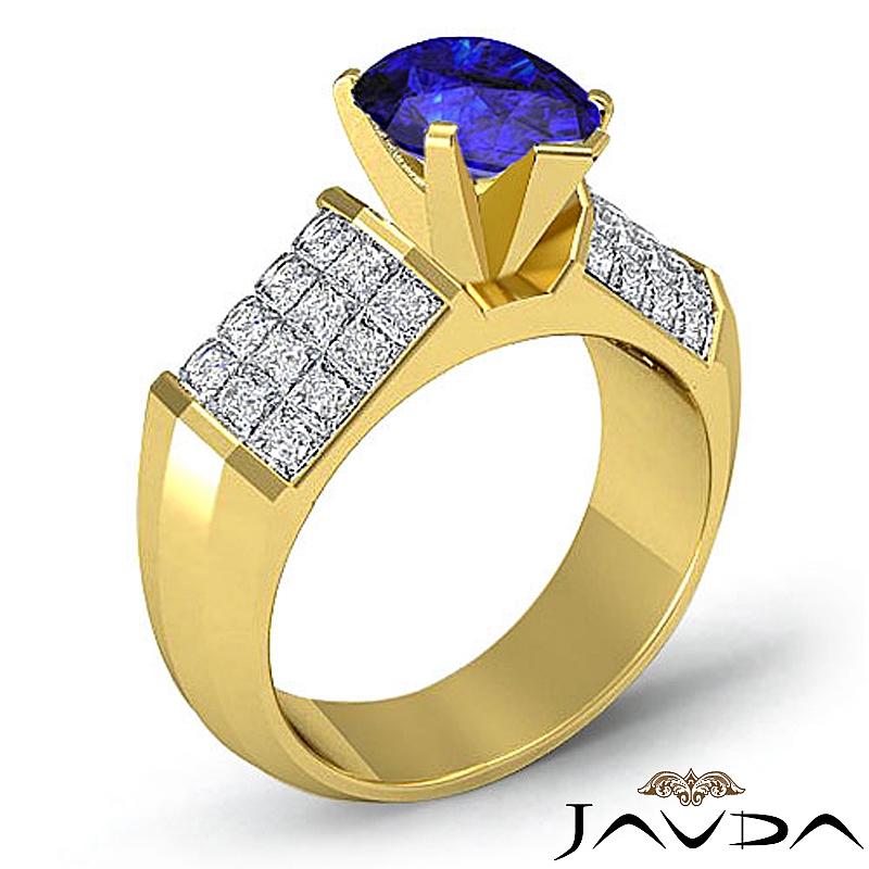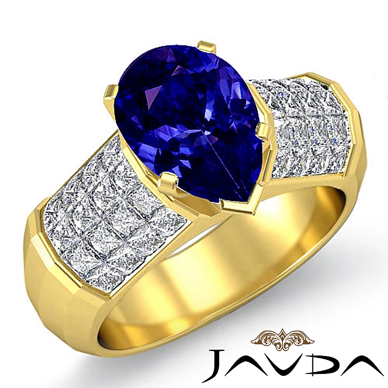 Sidestone Invisible Set style Engagement Ring, center is Pear shape D Block Tanzanite Report by , Color & clarity, Made in 14k Yellow Gold (2.2 ct. tw.)