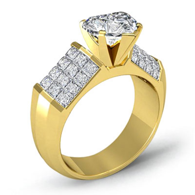 1.2Ct Princess Diamond Women Engagement Ring Invisible 18k Yellow Gold Semi Mount.