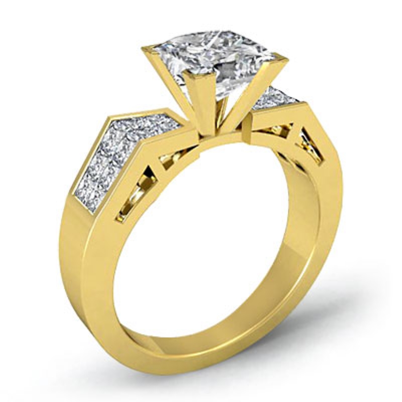 Invisible Classic Side Stone style Engagement Ring, center is Princess shape Diamond Report by GIA, I Color & VVS1 clarity, Made in 14k Yellow Gold (1.18 ct. tw.)