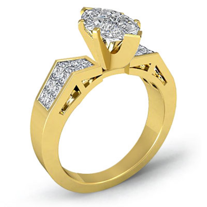 Invisible Classic Side Stone style Engagement Ring, center is Marquise shape Diamond Report by GIA, J Color & VS2 clarity, Made in 14k Yellow Gold (1.28 ct. tw.)