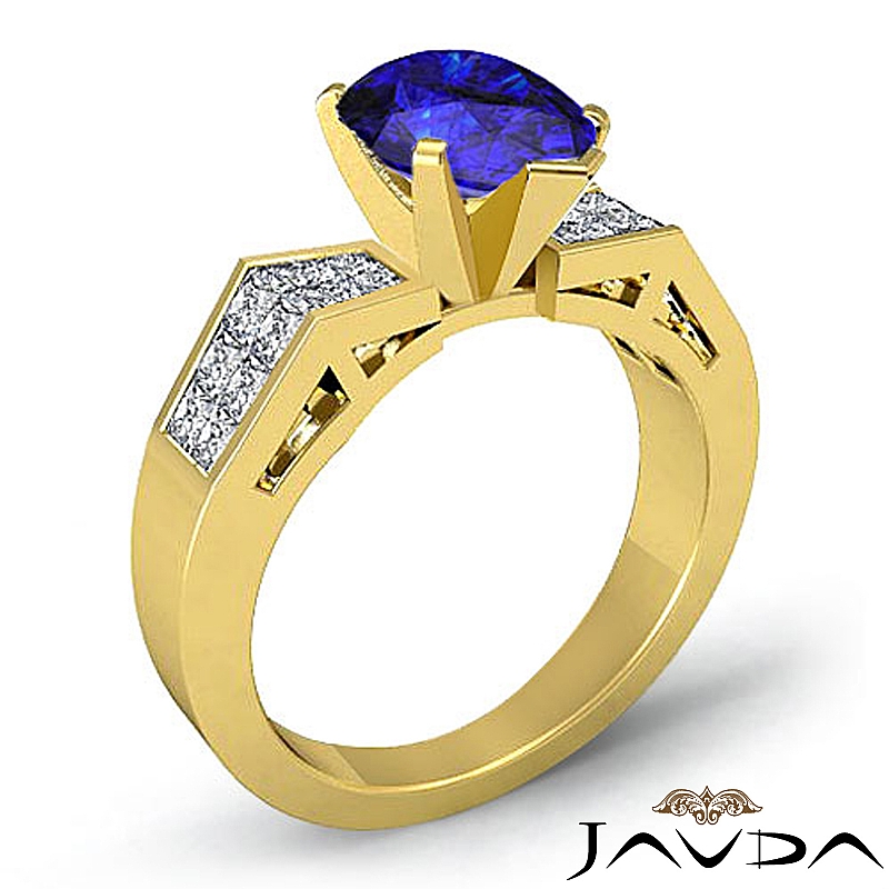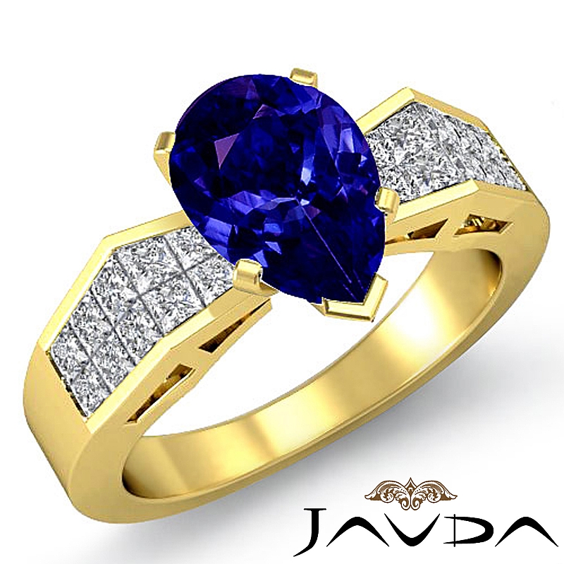 Invisible Classic Side Stone style Engagement Ring, center is Pear shape D Block Tanzanite Report by , Color & clarity, Made in 14k Yellow Gold (1.68 ct. tw.)
