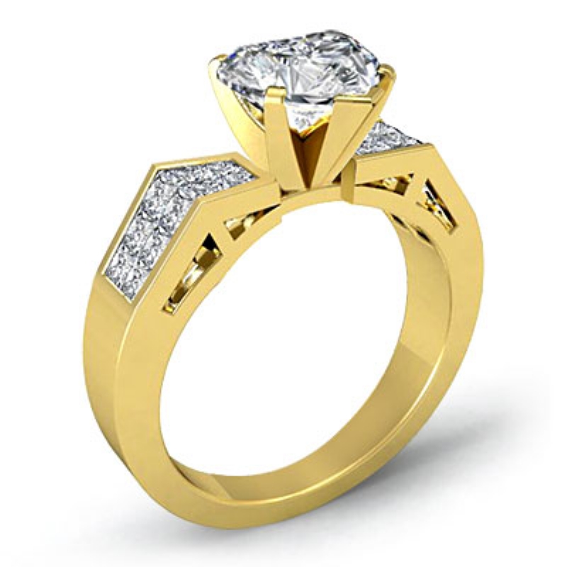 0.68Ct Princess Diamond Women Engagement Ring Invisible 18k Yellow Gold Semi Mount.