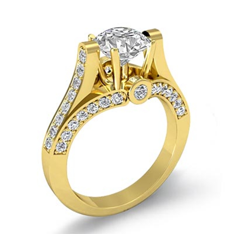 0.55Ct Round Diamond Semi Mount Engagement Bezel Ring 18k Yellow Gold.