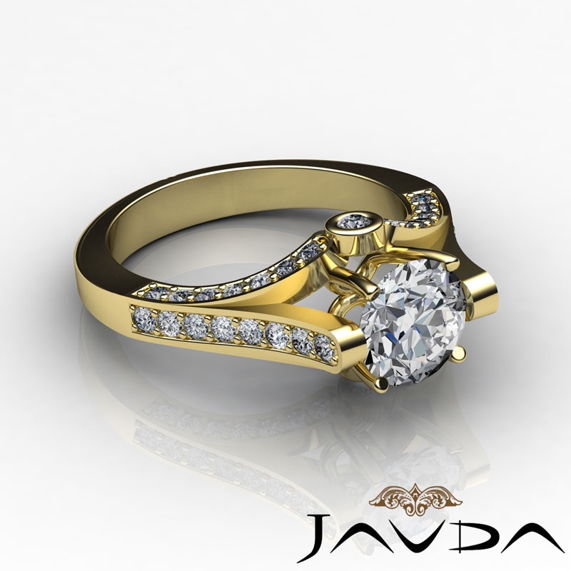 style Engagement Ring, center is Round shape Diamond Report by GIA, F Color & VS2 clarity, Made in 18k Yellow Gold (1.05 ct. tw.)