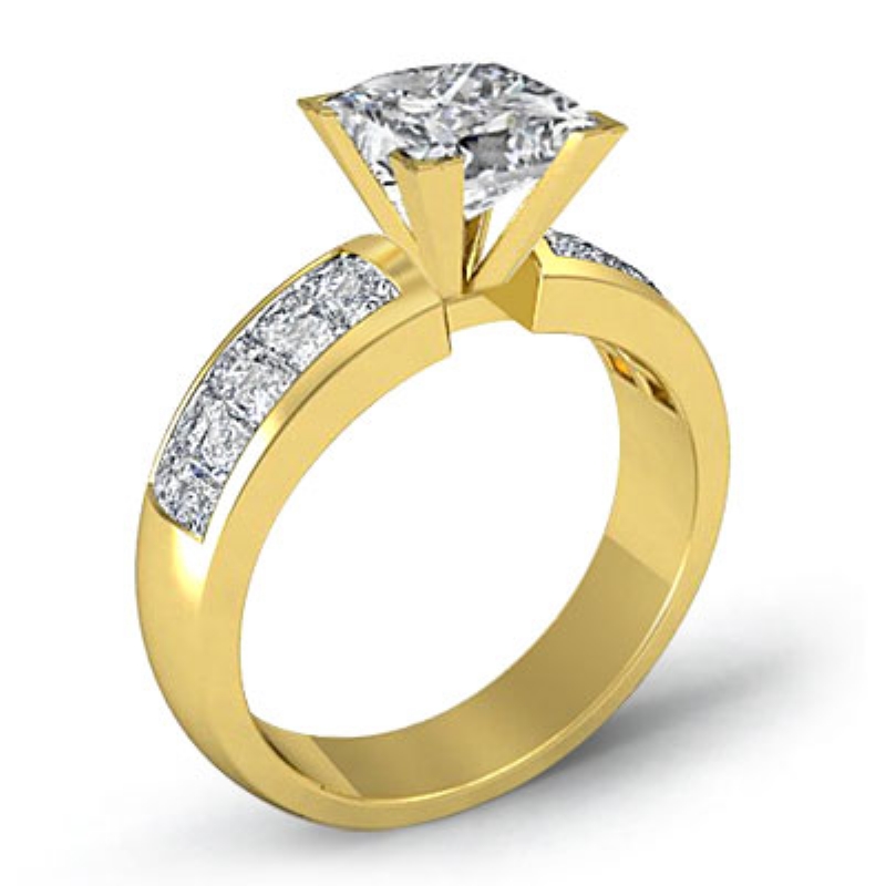 style Engagement Ring, center is Princess shape Diamond Report by GIA, E Color & VS2 clarity, Made in 18k Yellow Gold (1.39 ct. tw.)
