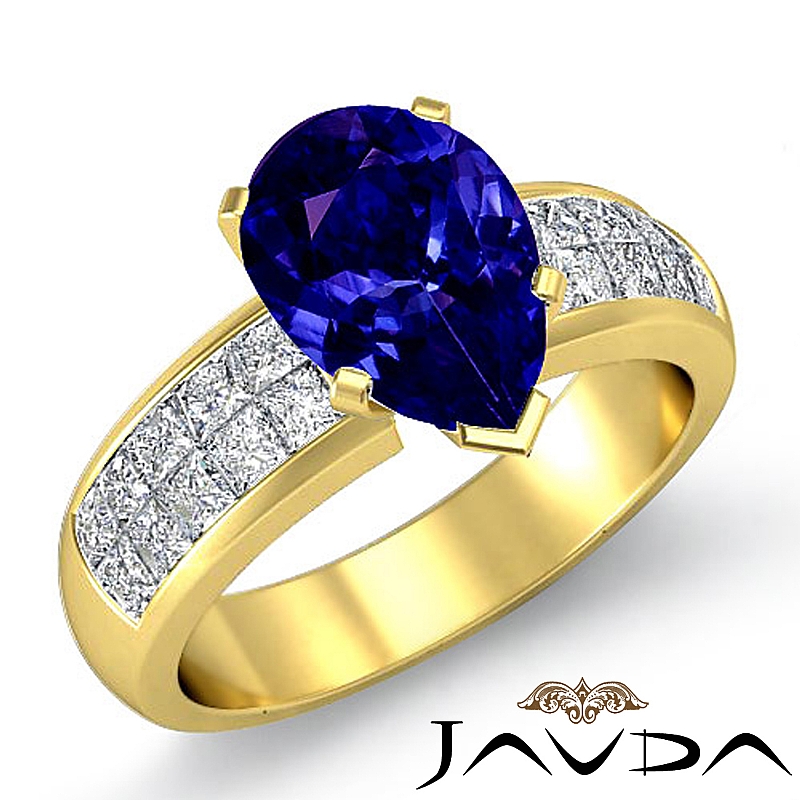 style Engagement Ring, center is Pear shape D Block Tanzanite Report by , Color & clarity, Made in 18k Yellow Gold (1.86 ct. tw.)