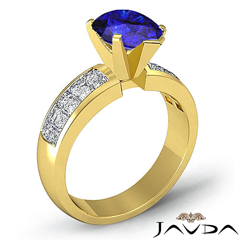 0.86Ct Princess Diamond Women Engagement Ring Invisible 18k Yellow Gold Semi Mount.