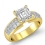 0.86Ct Princess Diamond Women Engagement Ring Invisible 18k Yellow Gold Semi Mount.