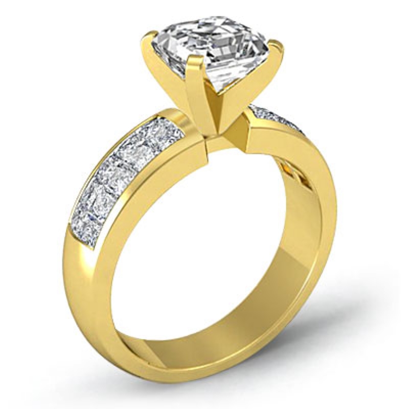 asscher diamond engagement ring report by igi, f color & vs1 clarity, 18k yellow gold (4.41 ct. tw.)