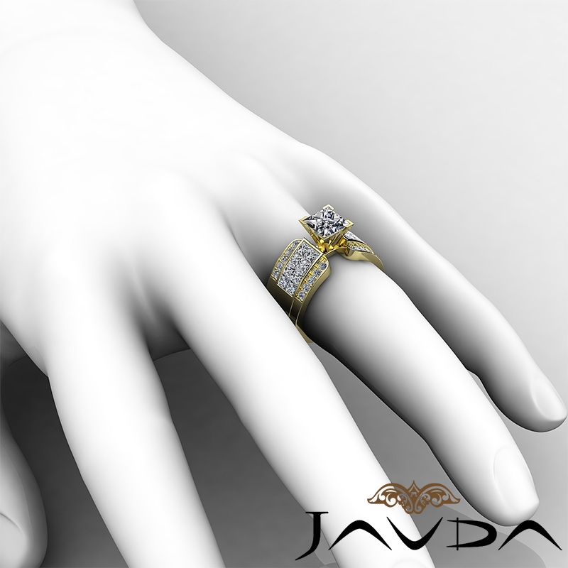 Invisible Set 4 Prong Peg Head style Engagement Ring, center is Princess shape Diamond Report by GIA, J Color & VS1 clarity, Made in 14k Yellow Gold (2.05 ct. tw.)